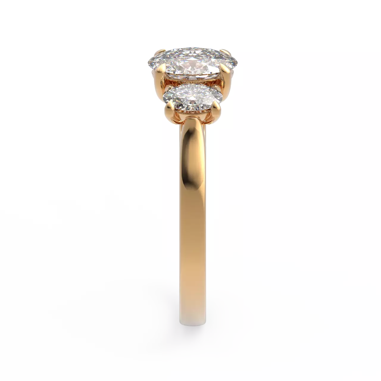 Bilden visar 1x1.0ct + 2x0.30ct ovala dimanter